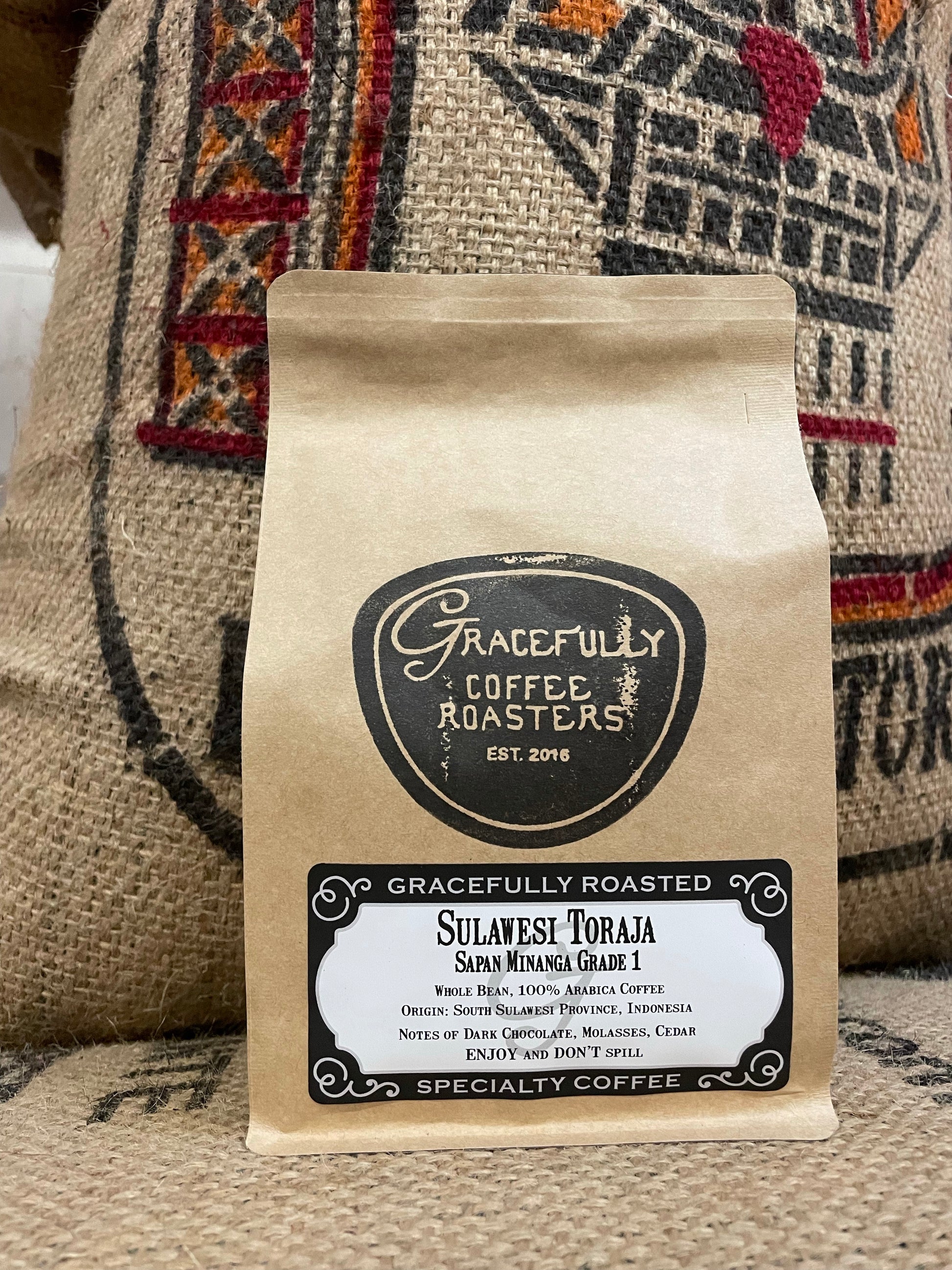 This coffee is sourced from family owned farms organized around the Toraja Coffee Growers Cooperative located in the central mountain region of the South Sulawesi province on Sulawesi Island (formerly known as Celebes), Indonesia. The Toraja people are an indigenous group with a traditional village lifestyle that includes houses resembling boats. In recent years the Toraja Coffee Growers Cooperative has been collaborating with an NGO called VECO, which is dedicated to improving farmer access to better agricultural practices for quality coffee production and improving coffee farm infrastructure. The partnership has helped to improve quality, increase earnings from coffee sales, and is strengthening farmers’ livelihoods.